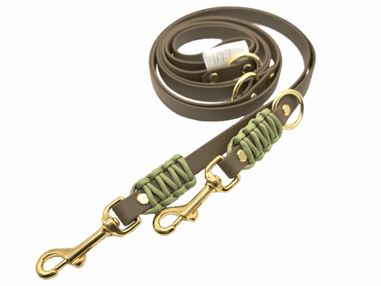 Mit einer gewissen Technik wird hochwertiges Paracord um die Biothane-Leine Oldenburg geknotet, um ein wirklich einzigartiges Design zu kreieren. Durch das kunstvolle geknotete Muster erkennt man noch die schöne Farbe der Grundleine, wodurch ein schönes Zusammenspiel aus Farbvarianten im Vorder- und Hintergrund entsteht – pure Kunst für den Hundealltag.